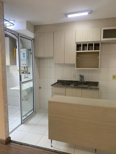 São 2 quartos com planejados, sala 2 ambientes, cozinha planejada, banheiro com box, área de serviço e 1 vaga de garagem.